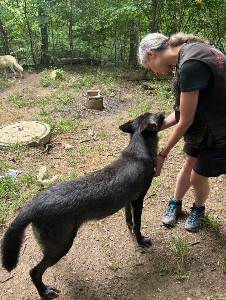 Aiyana was born at the Wolf Science Centre in spring 2024 and was visited by Windkraft Simonsfeld when she was still a puppy. Now, around a year later, she has grown into a curious, playful and energetic young wolf.
