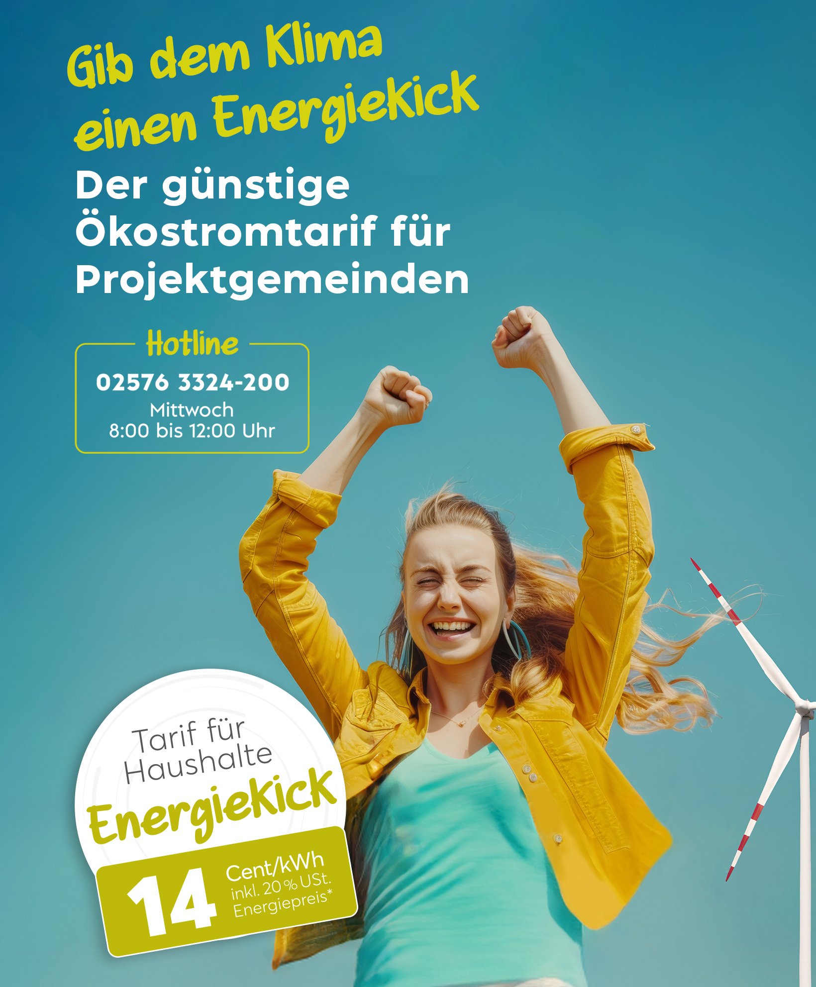 * Der ausgewiesene Energiepreis pro kWh beinhaltet die Kosten aus der verpflichtenden Zuweisung von Ökostrom. Der Preis ist ein reiner Energiepreis und gilt je Zählpunkt. Nicht enthalten sind die dem lokalen Netzbetreiber zu entrichtenden Systemnutzungstarife, die Ökostrompauschale, der Ökostromförderbeitrag, die Steuern, Gebühren und Abgaben auf Netz und Energie oder sonstige Kosten aufgrund gesetzlicher oder behördlicher Bestimmungen. Aktuelle Abgaben auf Energie: Elektrizitätsabgabe: 1,8 Cent/kWh (inkl. 20 % USt.). Es wird darauf hingewiesen, dass durch Gemeinden eine Gebrauchsabgabe in Höhe von bis zu max. 6 % der Energiekosten vorgeschrieben werden kann.