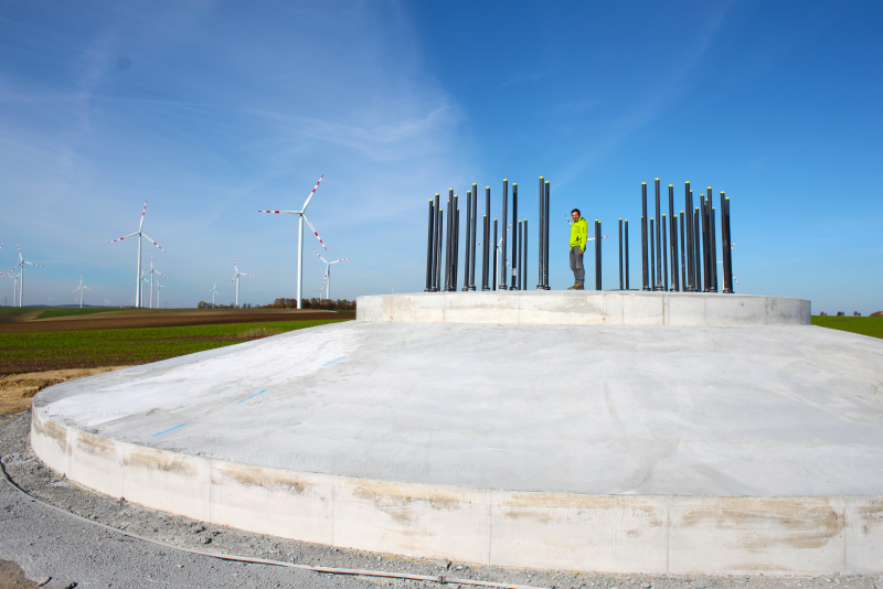 Das Fundament hat einen Durchmesser von 24 Meter und eine Höhe von 2,8 Metern