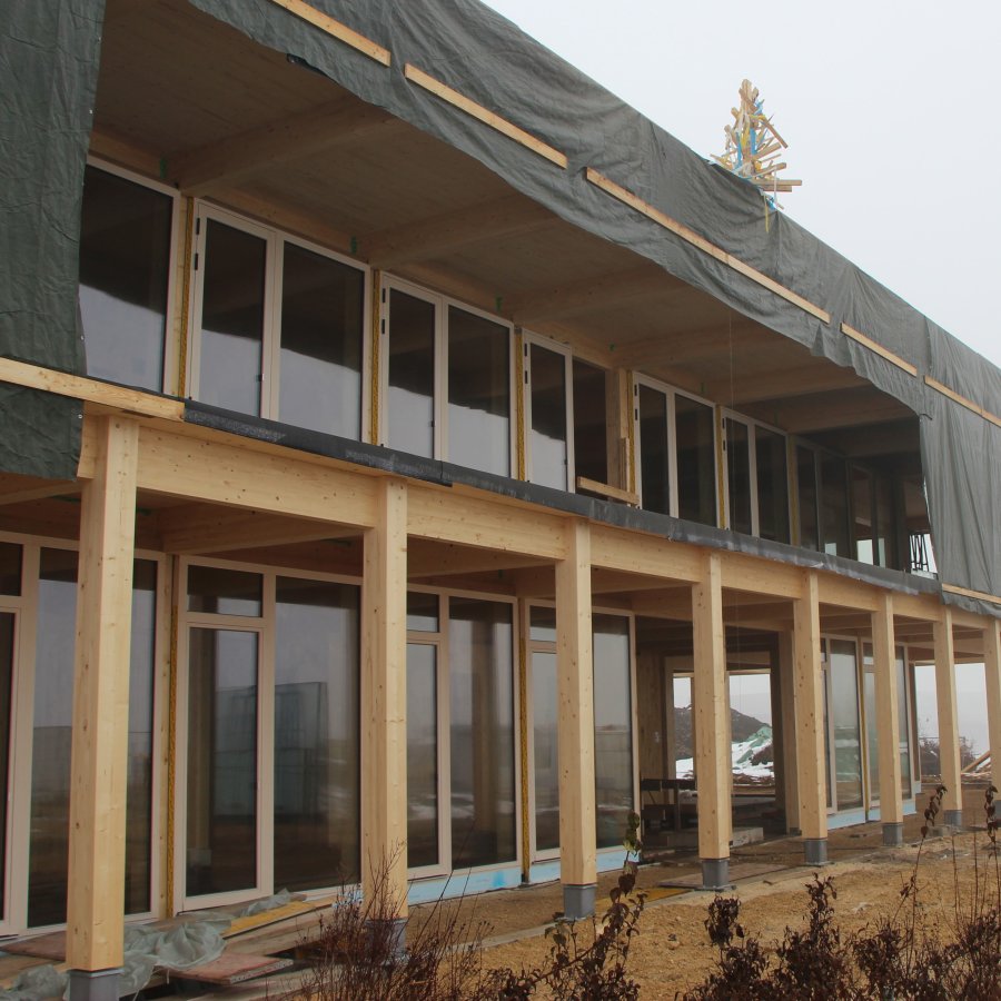 Markus Winter, Vorstand Technik, ergänzt: „Es ist tatsächlich ein ökologisches Leitprojekt, das wir hier umsetzen. Das spürt man bereits im Rohbau. Ich möchte mich bei allen Arbeitern und Verantwortlichen der Baufirmen und natürlich auch bei unserem Architekten Juri Troy bedanken, die hier Großartiges leisten. Wir freuen uns schon sehr darauf, wenn das Gebäude mit Ende 2024 – vielleicht auch schon früher – an uns übergeben wird.“