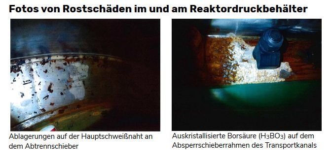 „Annahmen von ‚absoluter‘ Sicherheit bei einem Atomkraftwerk sind offenkundig problematisch und einer Sicherheitsbehörde, welche die Inbetriebnahme verantwortet, unwürdig. Ein uns von Whistleblowern zugespielter, fünf Monate alter interner Schadensbericht zeigt, dass diese ‚Annahmen‘ der Atomaufsicht schon jetzt gescheitert sind“, sagt Agnes Zauner, politische Geschäftsführerin von GLOBAL 2000. „Das Dokument belegt starke Rostschäden aufgrund von korrosionsanfälligem Stahl im Primärkreislauf. Was passieren würde, wenn ein Atomreaktor mit rostanfälligen Teilen im Kernstück in Betrieb genommen wird, möchten die besorgten Atomingenieure nicht verantworten. Wir veröffentlichen heute Fotos aus dem Schadensbericht und weisen darauf hin, dass es auch aktuelle Aufnahmen von ähnlichen Problemen gibt.“