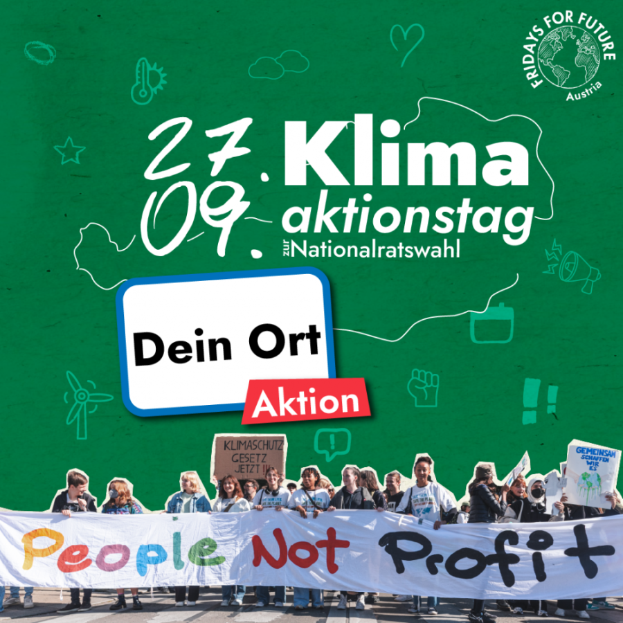Unter dem Motto „#EineWeltZuGewinnen“ wurde auch in Österreich lautstark gegen fossile Energieträger und Greenwashing demonstriert. Wir stehen kurz vor der Nationalratswahl, die die klimapolitische Zukunft der nächsten Jahre entscheidend beeinflussen wird. Angesichts dessen richteten sich die Forderungen diesmal noch intensiver an die zukünftige Regierung.