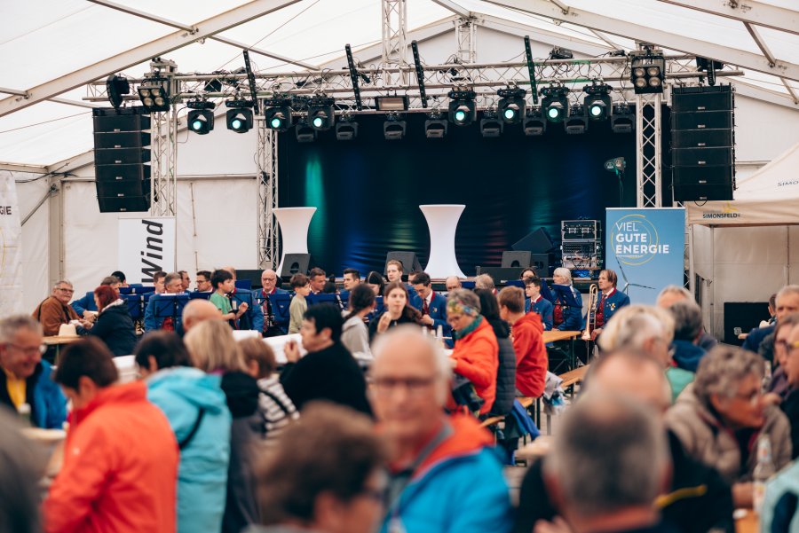 Die Veranstaltung bot ein umfangreiches Rahmenprogramm mit Kranauffahrten, Anlagenbesichtigung, regionalem Essen und Trinken und vielem mehr. Ab 20 Uhr brachte die Band Weinviertel Mischung das dicht gefüllte Veranstaltungszelt zum Beben.