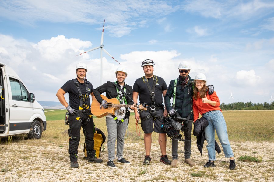 Die Aufgabenstellung lautete: Singe das Lied „wind of change“ auf einem Windrad! Das hört sich erst einmal nicht so schwer an, ein bisschen mulmig ist dem lieben Jakob dann aber doch geworden.